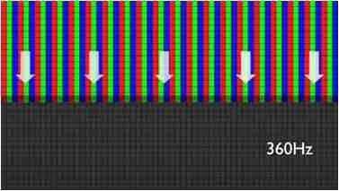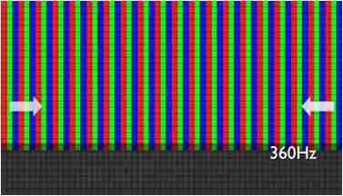 传统液晶驱动是从左到右单向进行,,,在画面更新速度愈来越愈快的情况下,,位于驱动线路末端的右下角区域,,,画素的闸极来不及在短时间内获得足够电压,,,无法显示出正确的颜色资讯。。 |